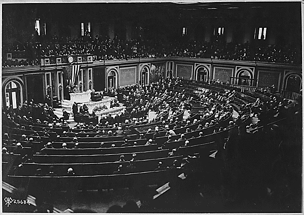 “President Wilson reading the Armistice terms to Congress” November 11, 1918. National Archives photo 111-SC-25684. Photographs of American Military Activities. NAID: 530764. Unrestricted.